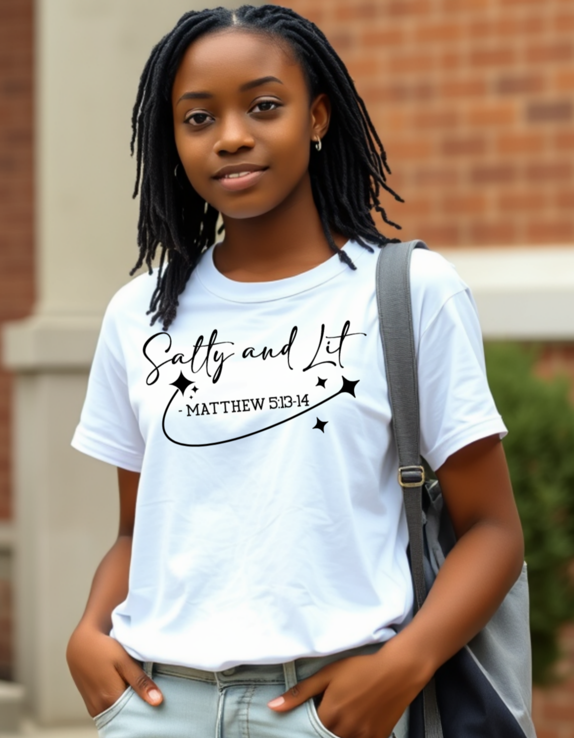 She’s walking in flavor and light—on campus, online, and in calling. This tee turns Matthew 5:13-14 into a daily declaration.
