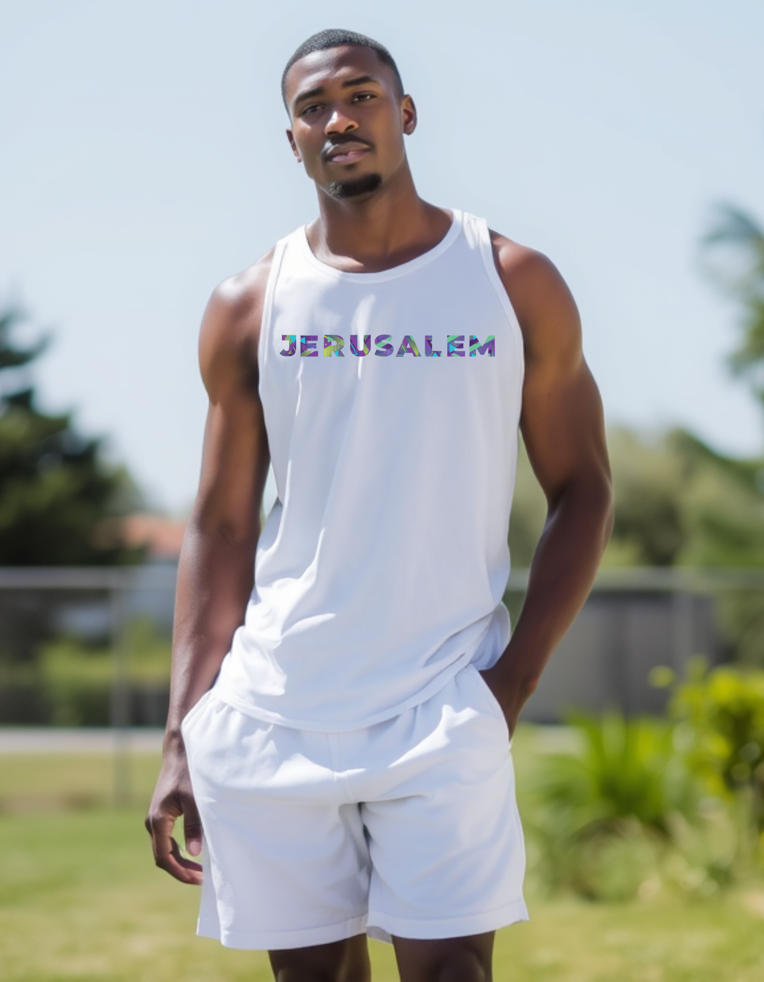 This vibrant piece features JERUSALEM in bold block lettering, bursting with color and cultural pride. Whether you choose the relaxed short-sleeved tee or breathable tank, it’s a wearable declaration of faith, heritage, and heavenly direction.