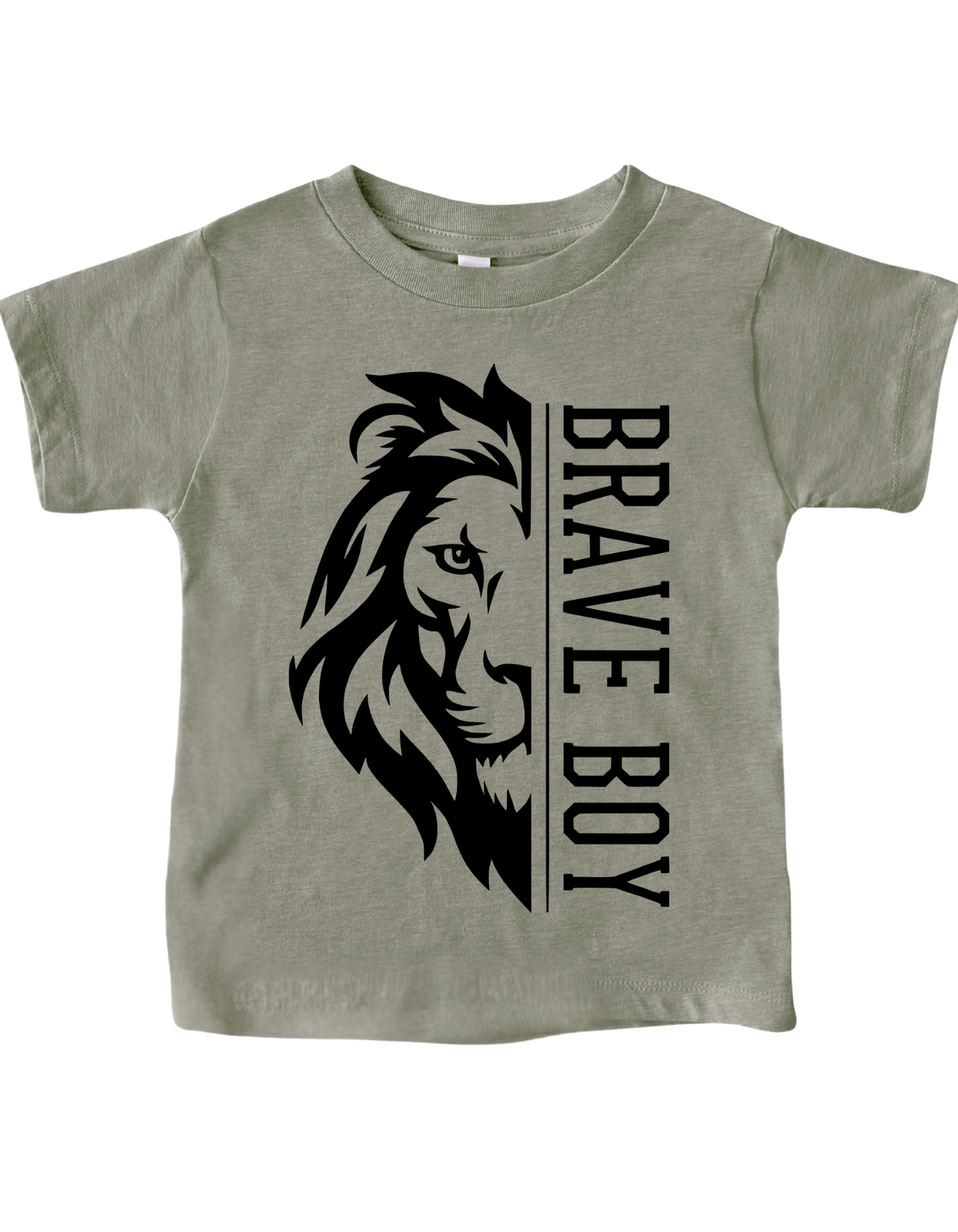 Inspired by Proverbs 28:1 β βThe righteous are bold as a lion.β The Brave Boy tee brings righteous boldness with a striking lion graphic and vertical script, for the boldest little hearts roaring through playtime or snuggling in close.