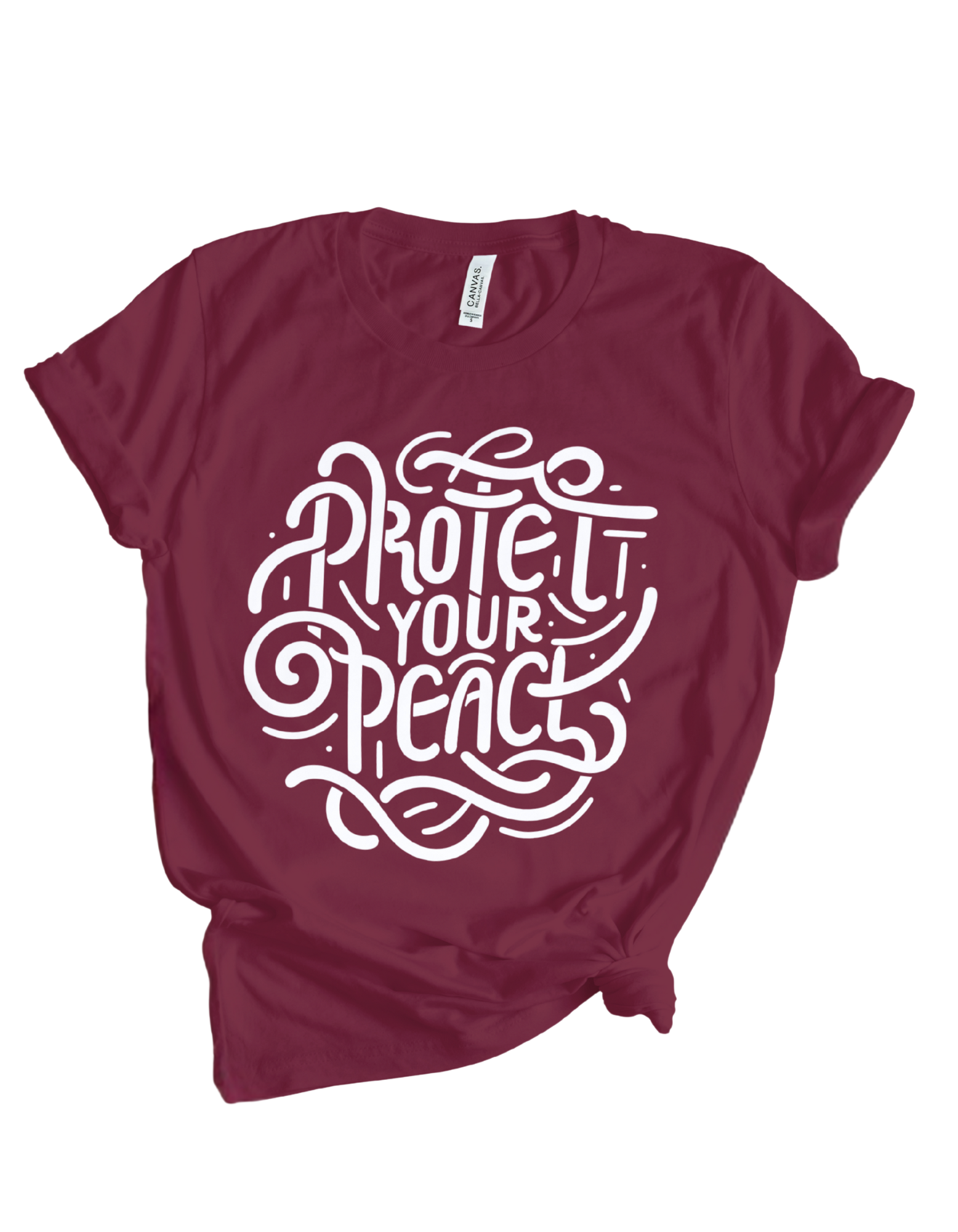 Click on the "Protect Your Peace" design button as the color option, choose your size, then enter your preferred Gildan color in the box below. We’ll make it just how you like it!